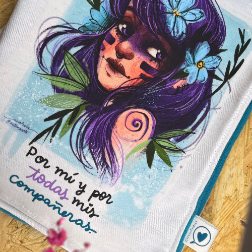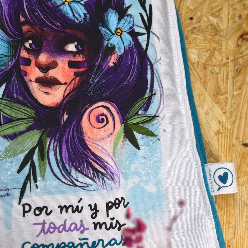 Bolsa de calor con semillas de lino y lavanda con una ilustración original de María Cabañas.